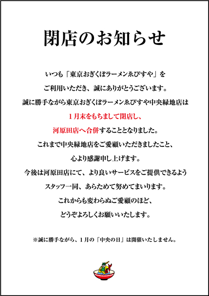 東京おぎくぼラーメンゑびすや中央緑地店は